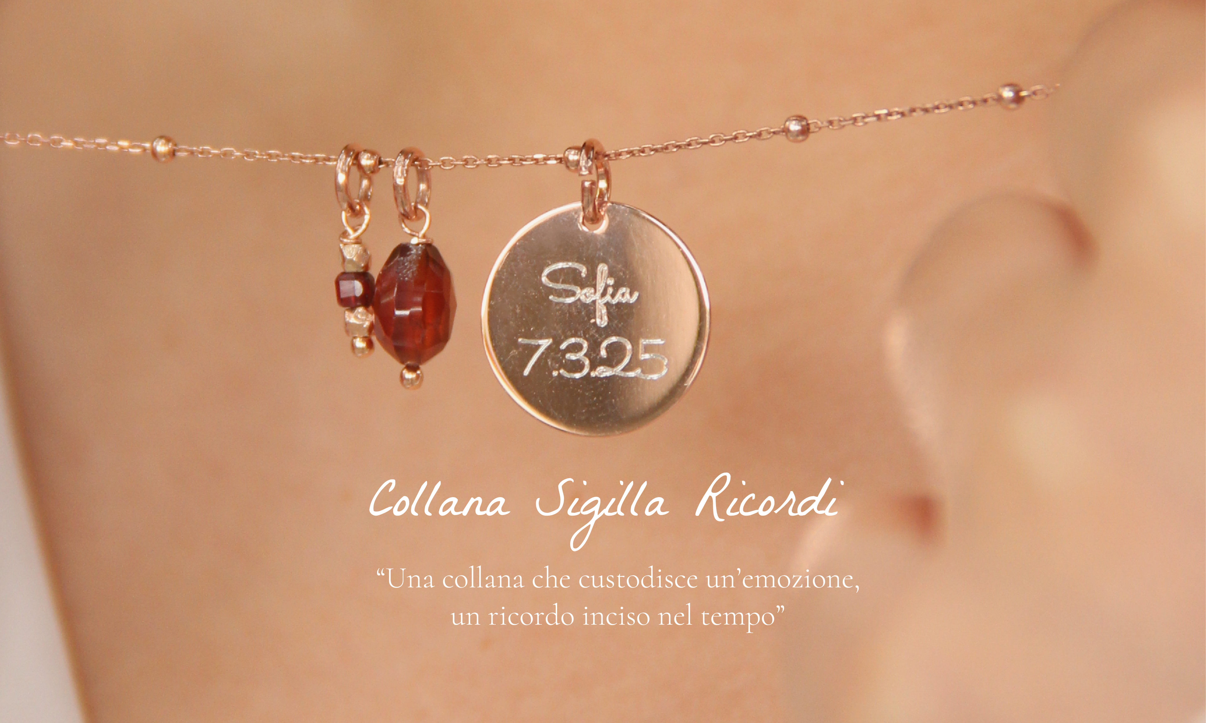 Sigilla Ricordi è una collana realizzata interamente a mano nel laboratorio Laura Sciunnach. La lavorazione artigianale permette un’ampia personalizzazione, dando vita a un gioiello unico, curato nei minimi dettagli.