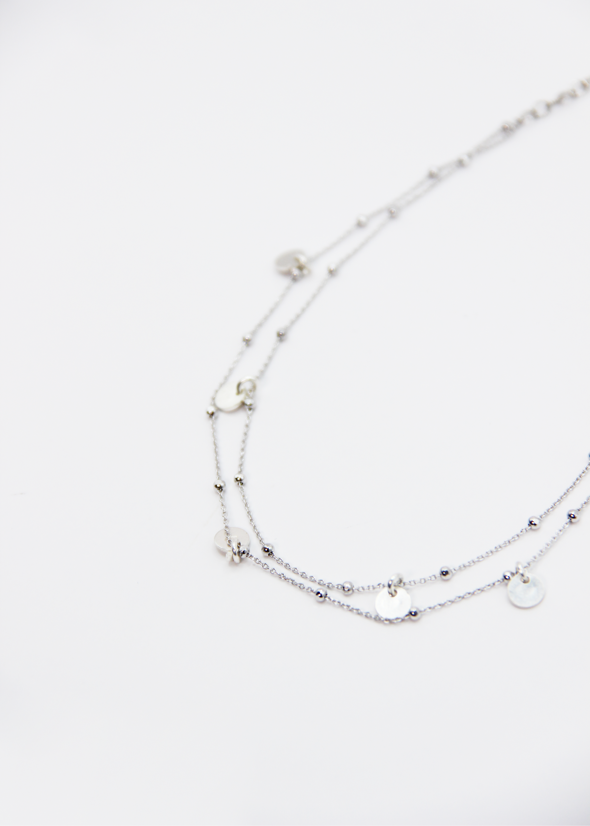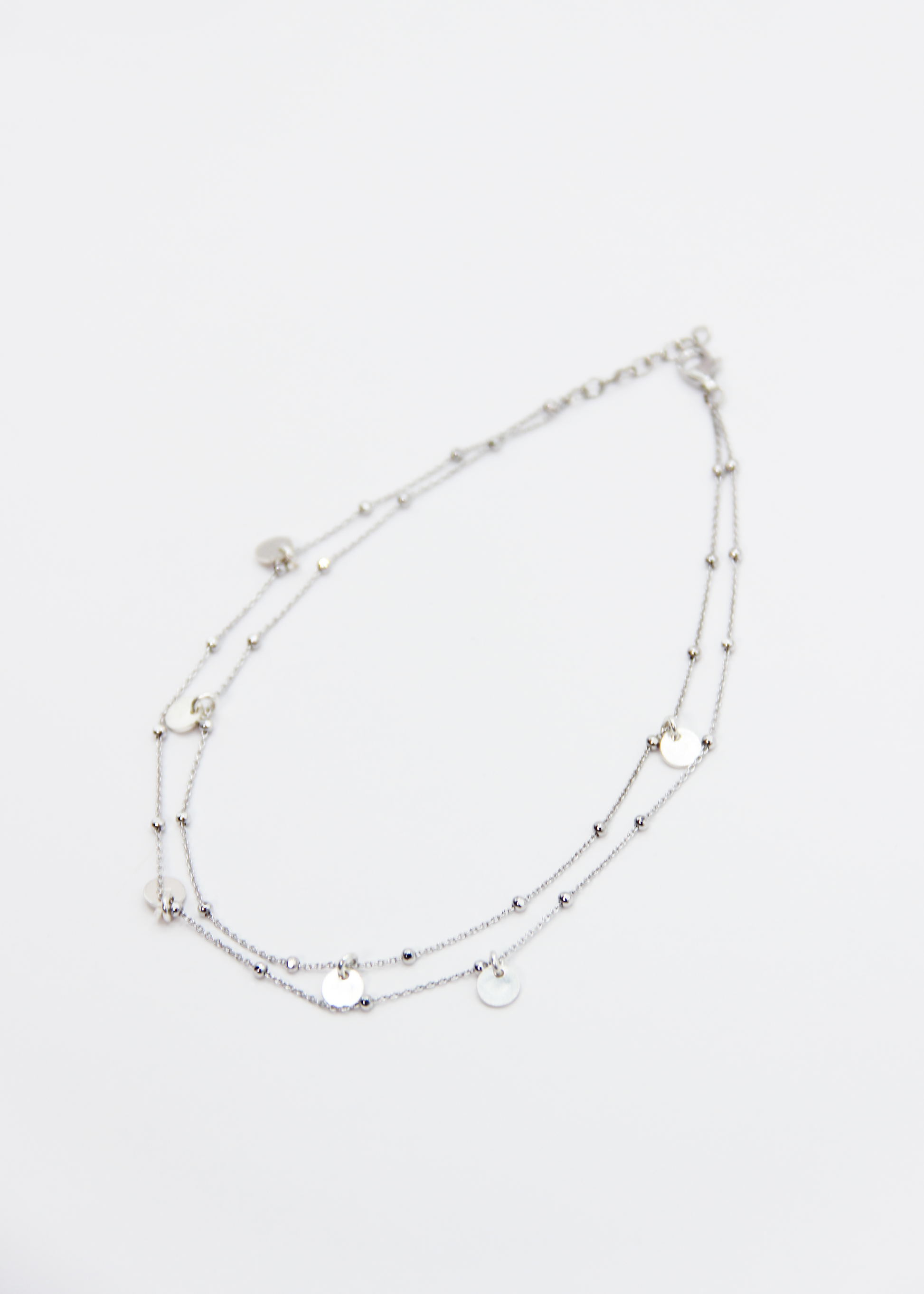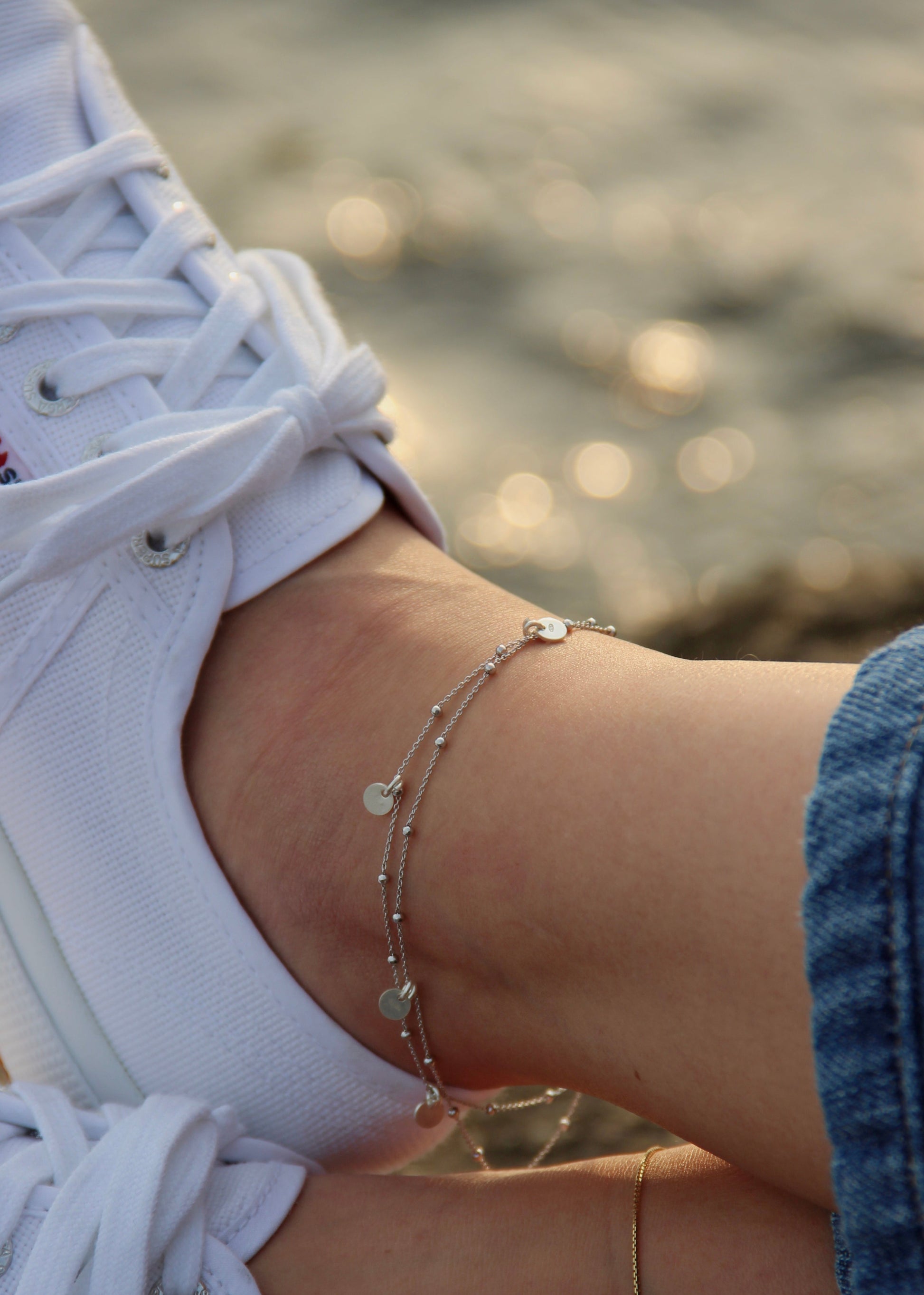 Cavigliera in argento 925 due giri in gradazione con piccoli ciondoli tondi.