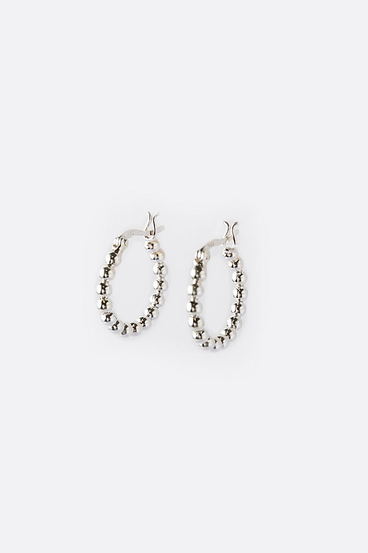 Queste anelle si rendono molto versatili, infatti con esse si possono fare molti abbinamenti. Di vari diametri, le piccole sfere di argento creano un effetto di lucentezza.