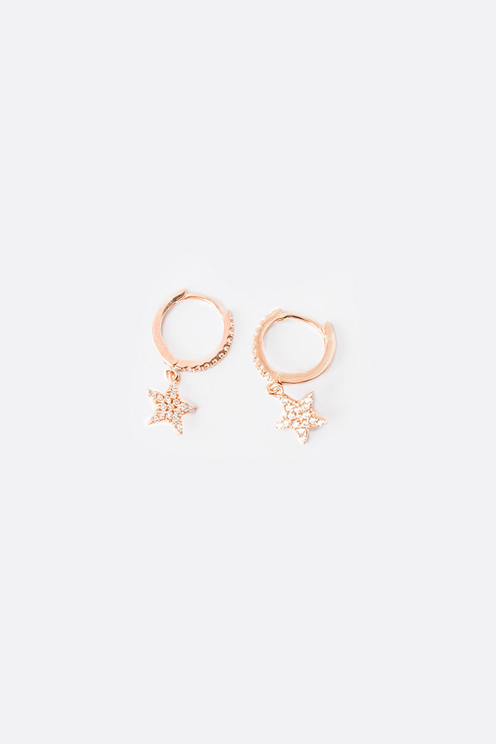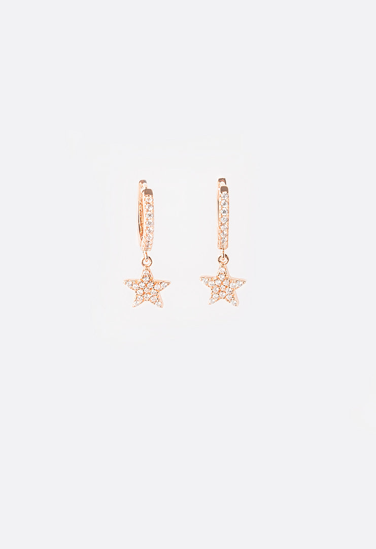 Orecchini a scattino con ciondolo a stella, in argento 925 placcato oro rosa e zirconi