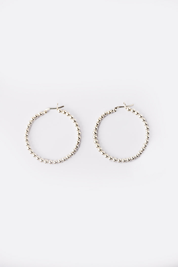 Queste anelle si rendono molto versatili, infatti con esse si possono fare molti abbinamenti. Di vari diametri, le piccole sfere di argento creano un effetto di lucentezza.