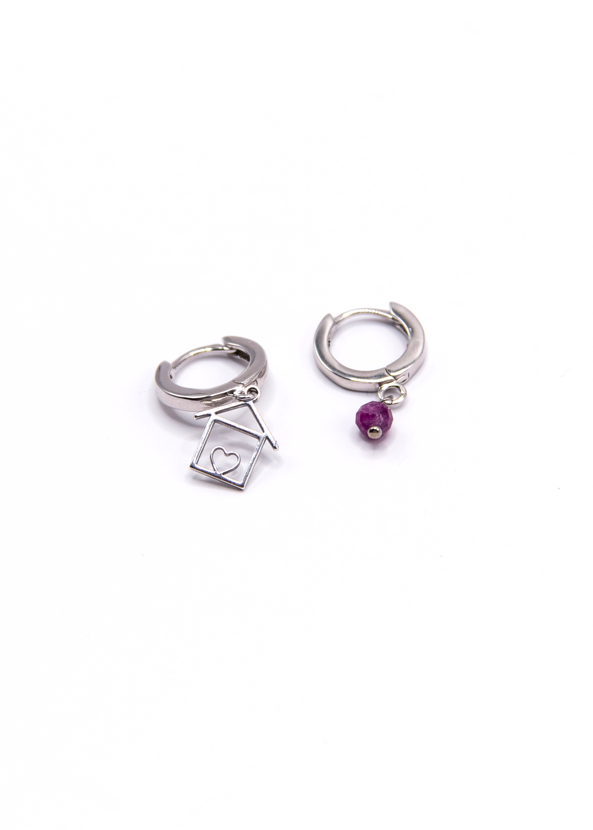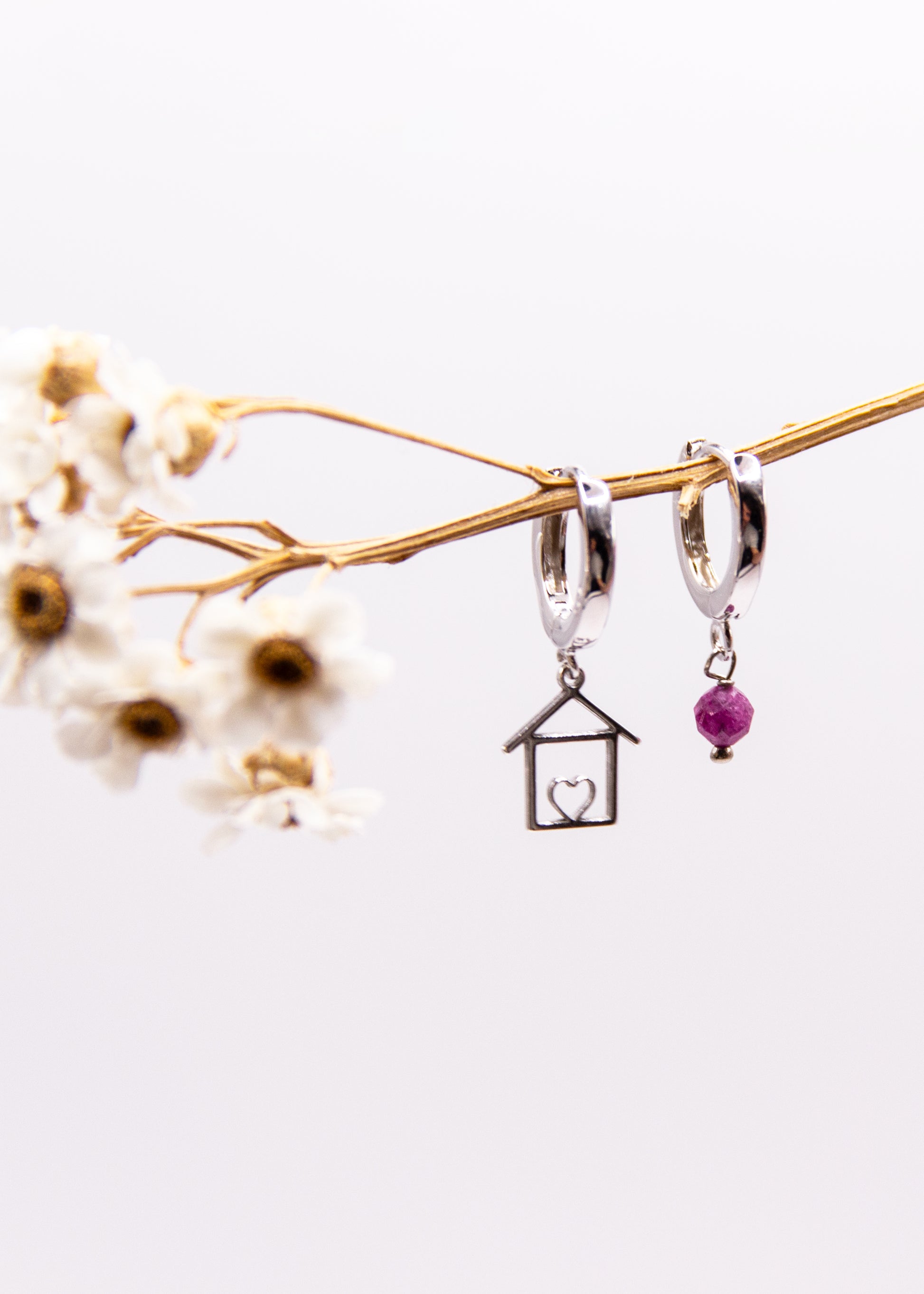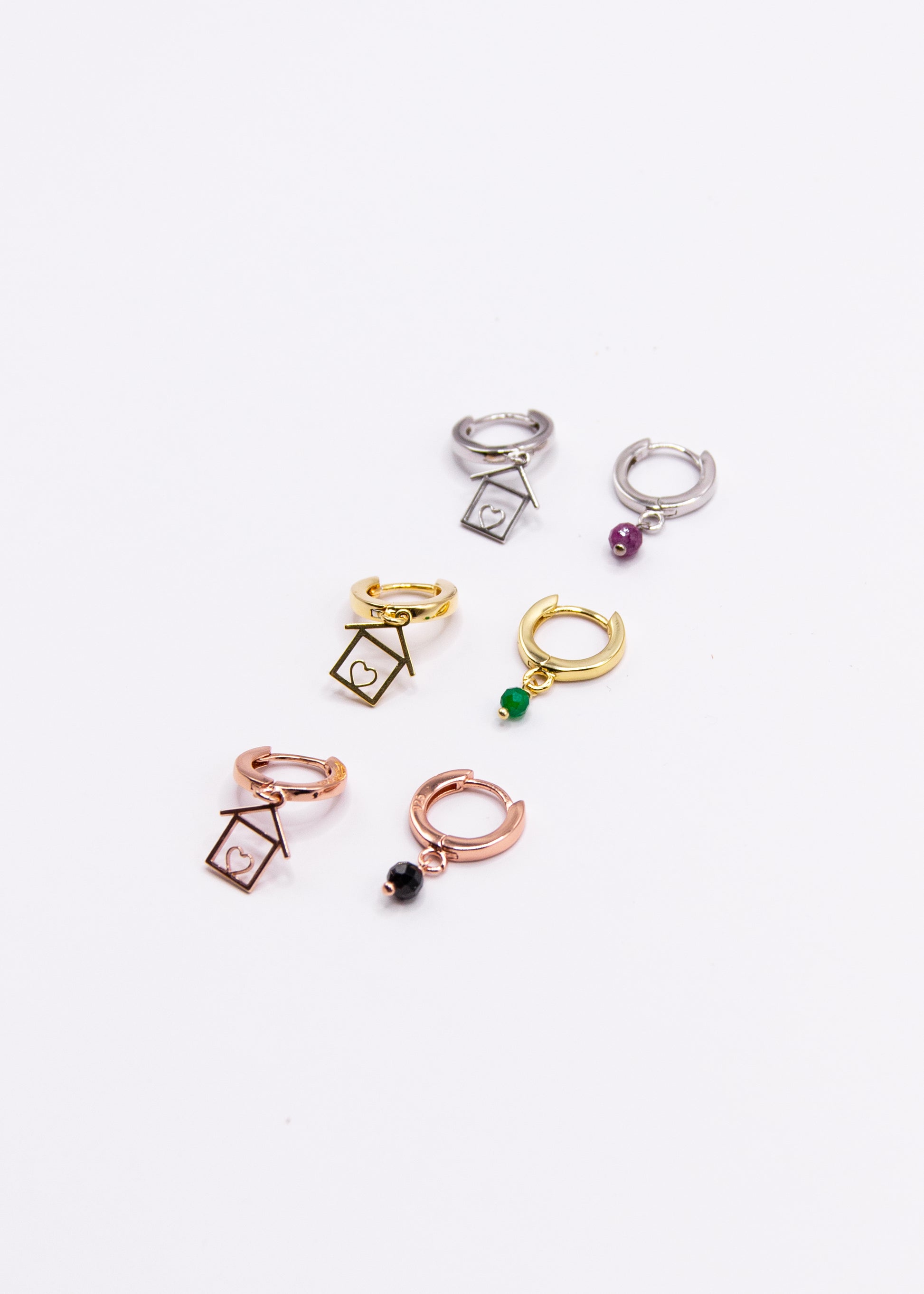 Scopri l'unicità degli orecchini Casetta, un connubio perfetto tra design originale e delicatezza. Questa coppia asimmetrica è realizzata in argento 925 e si distingue per il suo carattere unico: da un lato un delicato ciondolo a forma di casetta, simbolo di calore e accoglienza, dall'altro una pietra dura a scelta, per un tocco di colore e personalità.