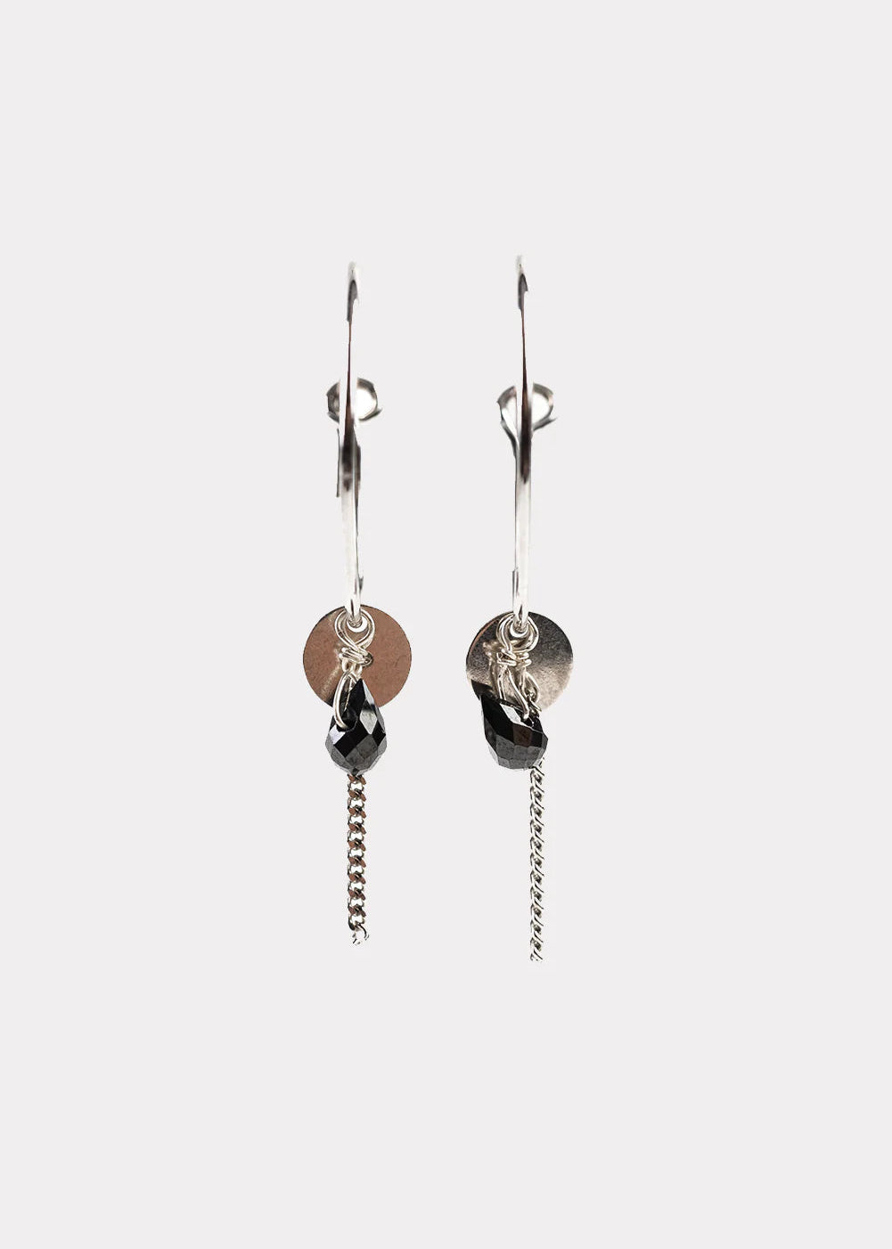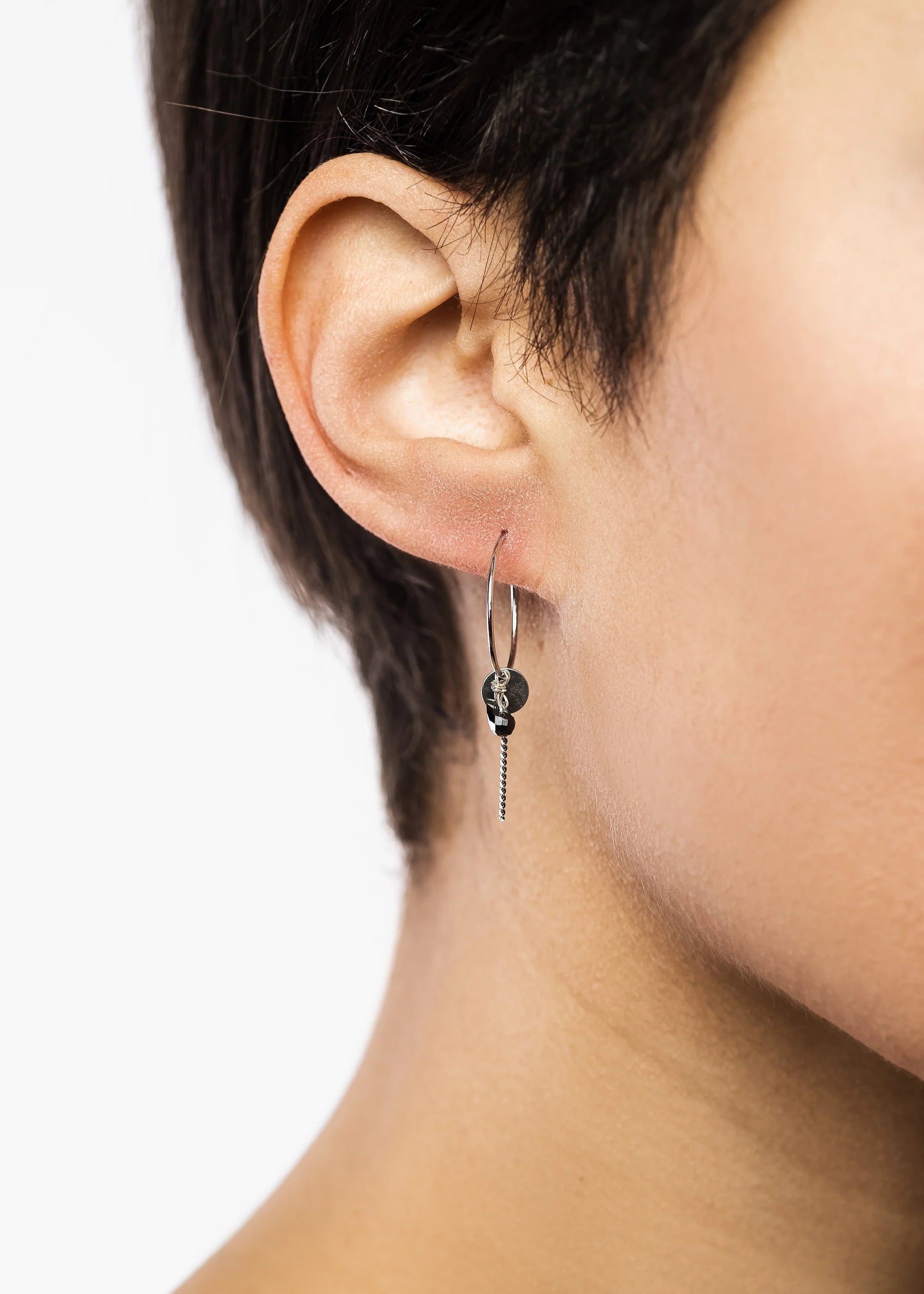 Orecchino cerchio in argento con pendente in pietra dura e medaglietta