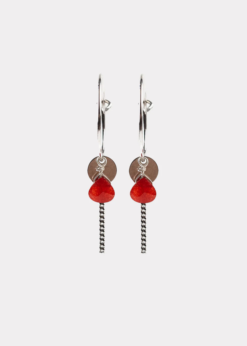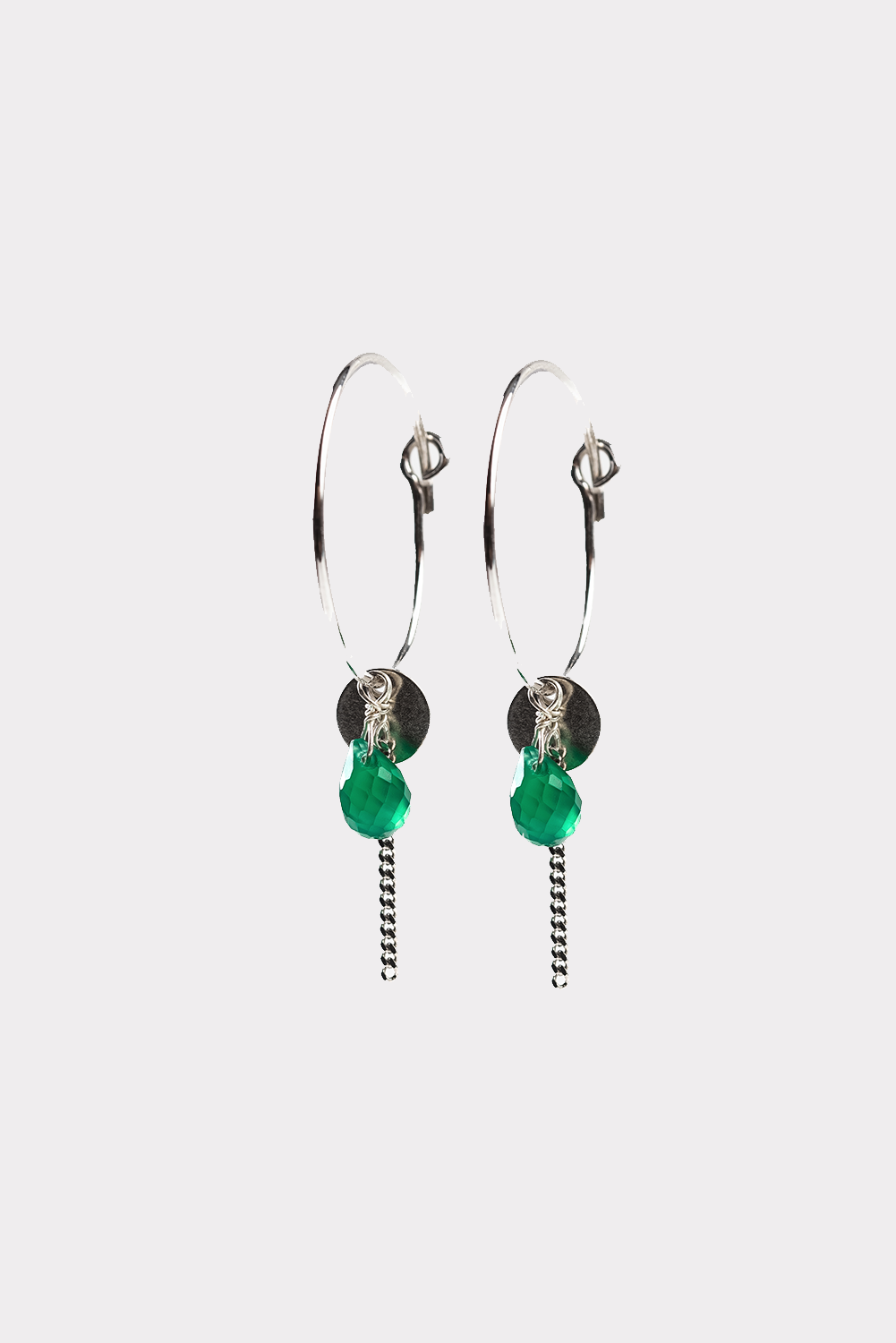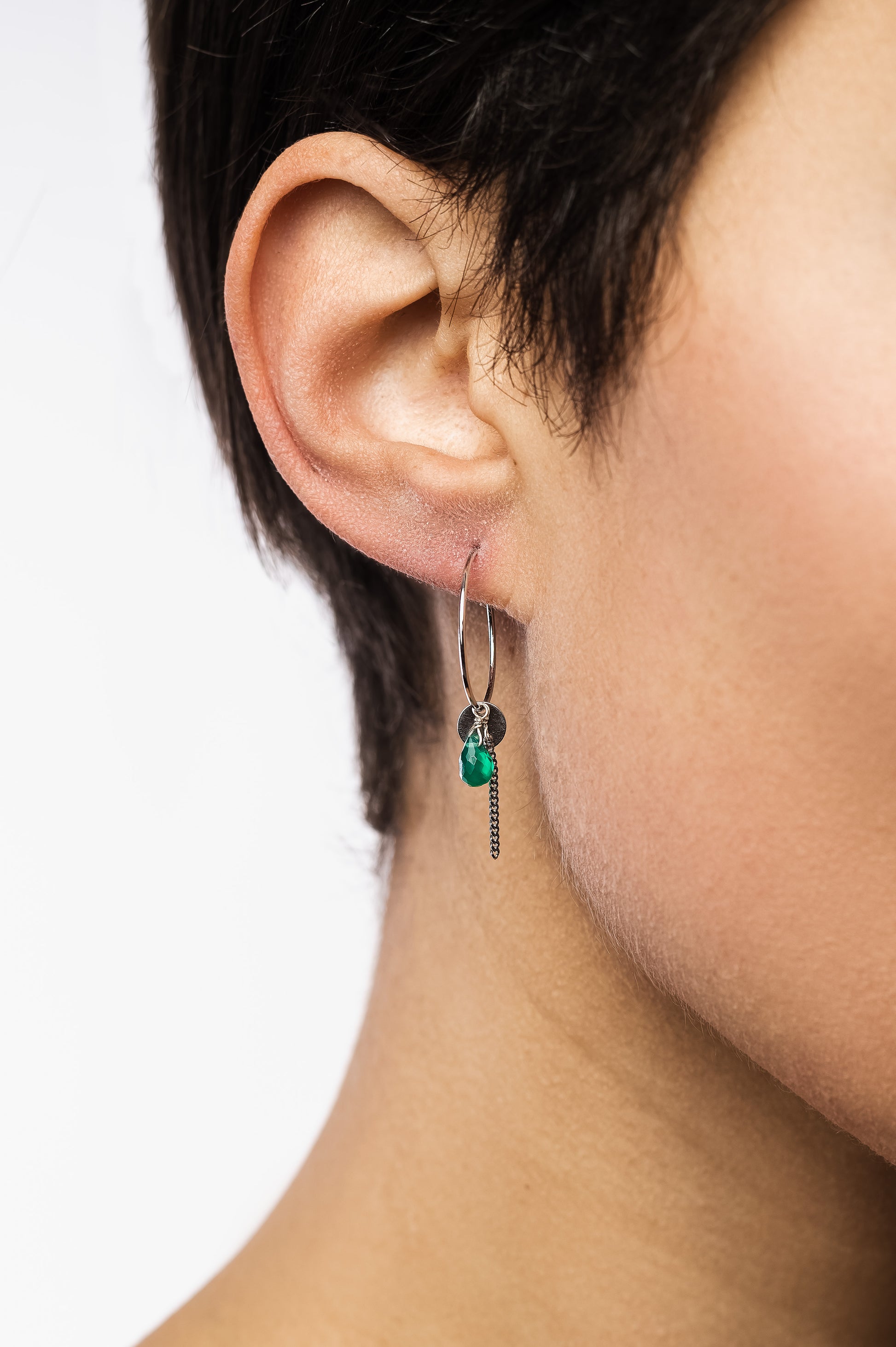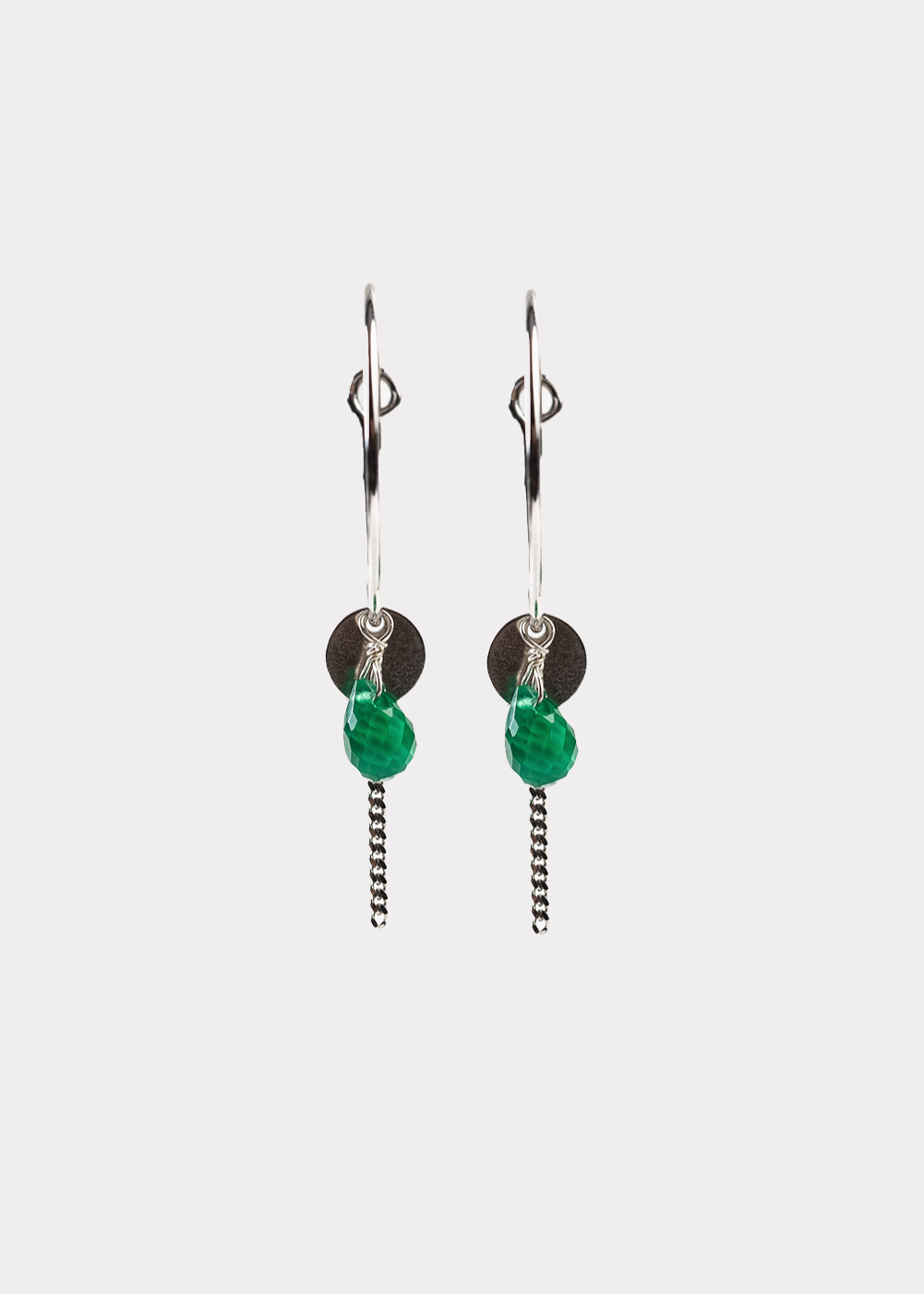 Orecchino realizzato in argento 925, uno stile minimale delicato, impreziosito da semplici ciondoli tra cui una pietra dura naturale per dare un tocco di colore ad ogni look