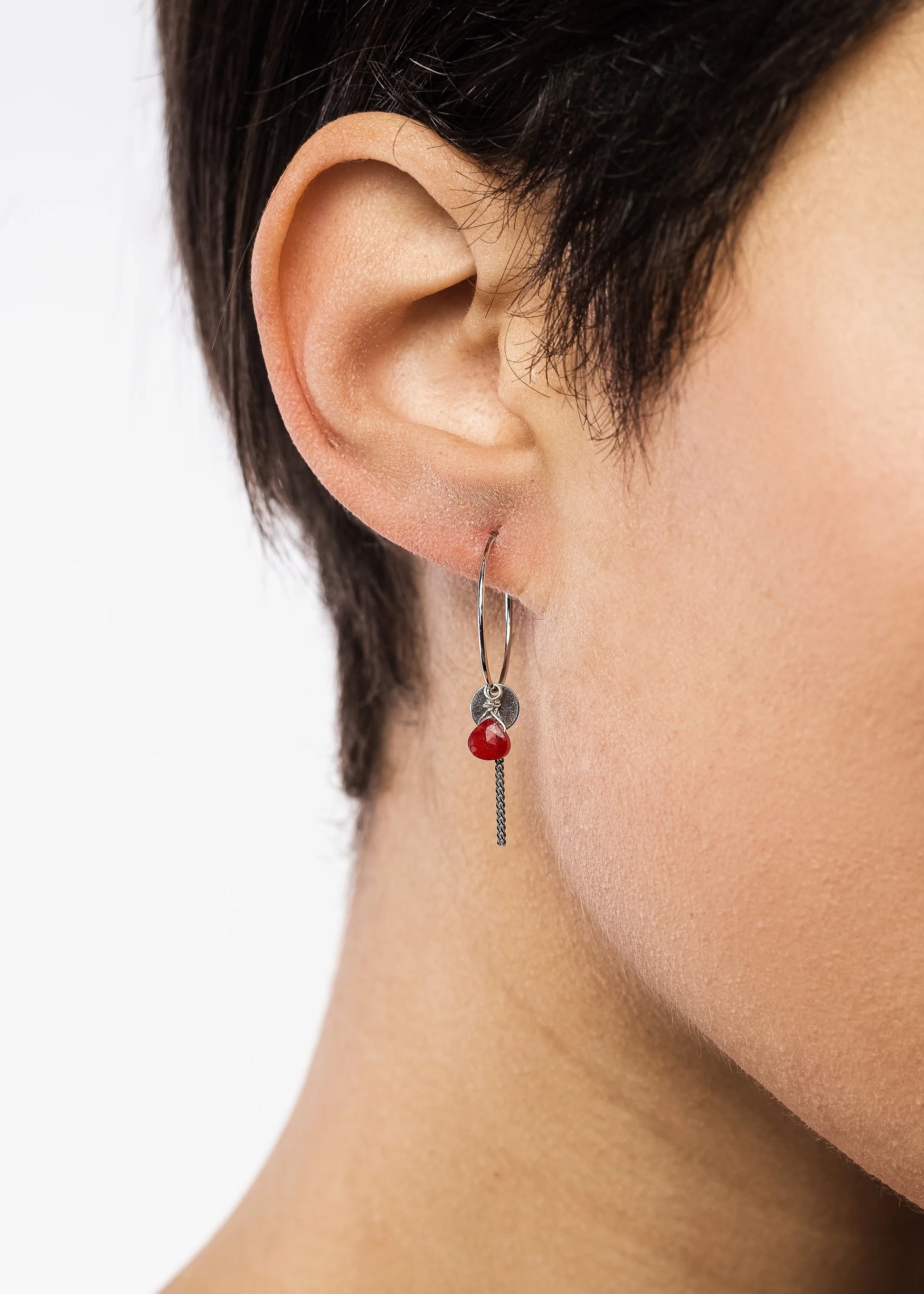 Orecchino cerchio in argento con ciondolo in pietra dura