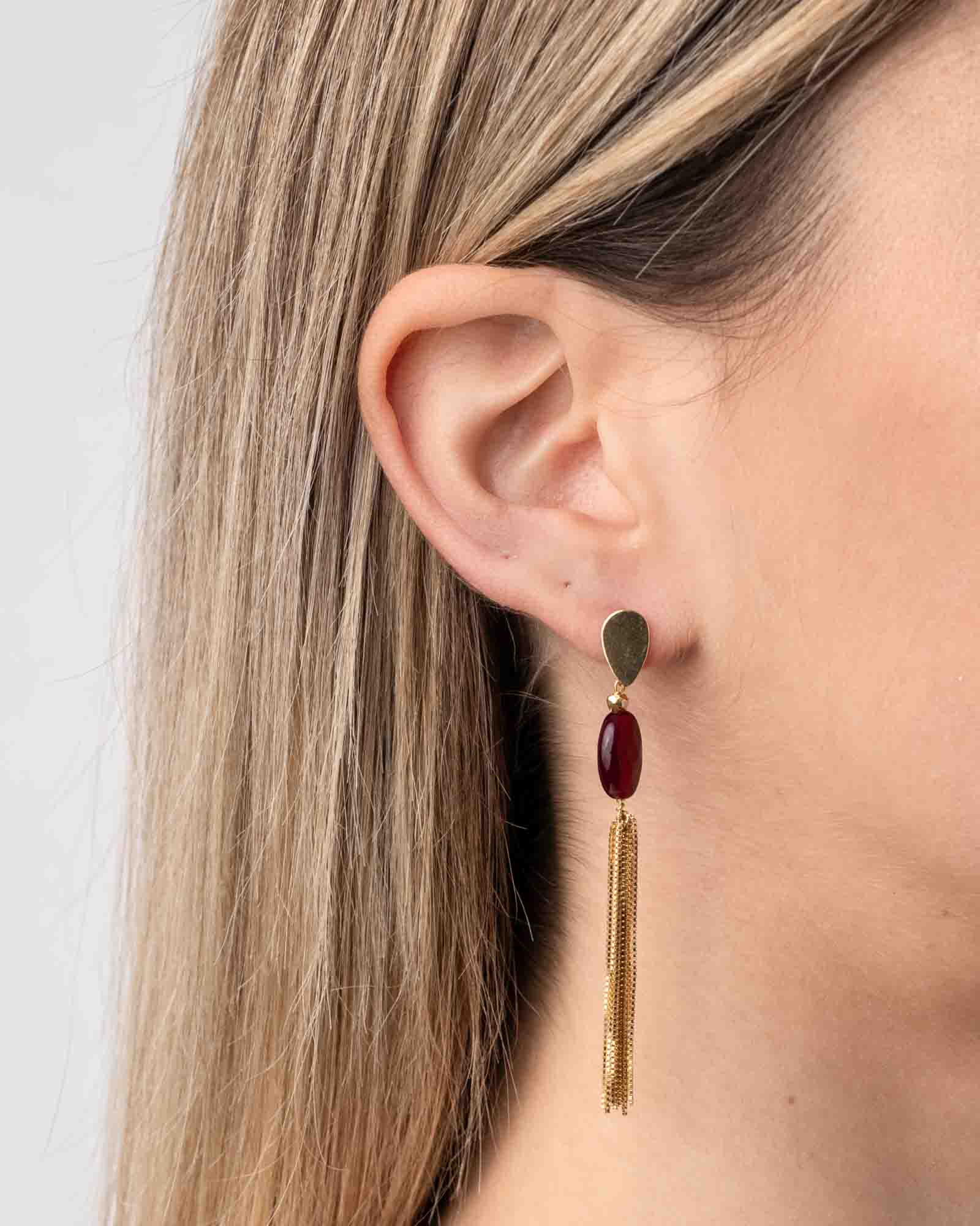Orecchino in argento e pietra radice di rubino